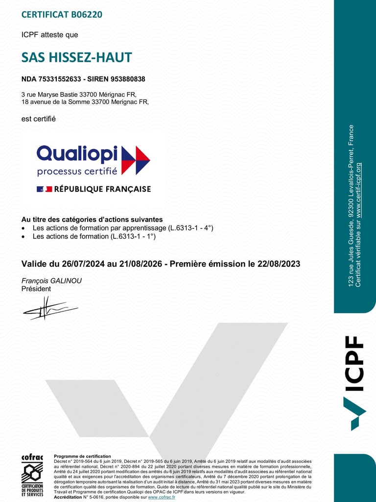 Nous vous proposons en plus de cursus principal, la possibilité de vous former sur des formations courtes et complémentaires. Élevez vos connaissances et vos compétences avec Hissez-Haut.